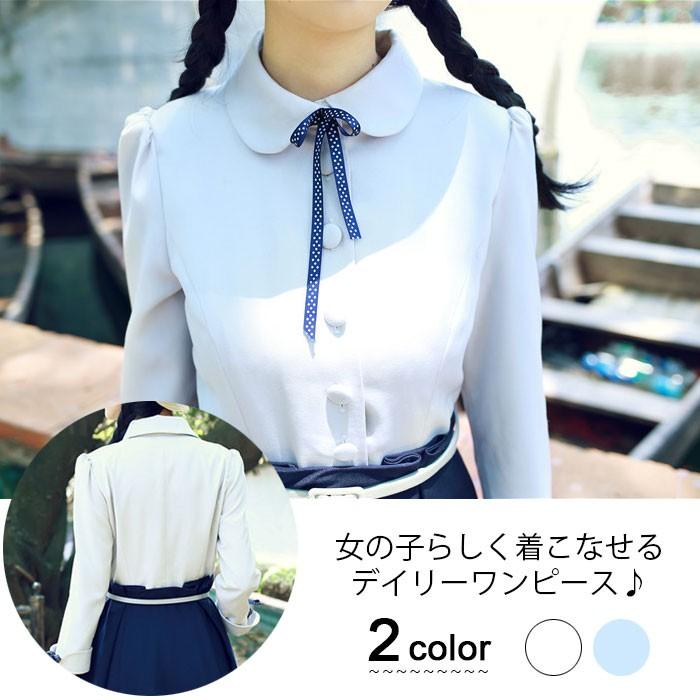 ワンピース チュニック ミモレ丈 長袖 レトロ 学院風 森ガール コスプレ 女子高生 合唱団 制服 フェイクレイヤード リボン入り ベルト付き 春 秋 春新作 Egt1153 Ffs 通販 Yahoo ショッピング